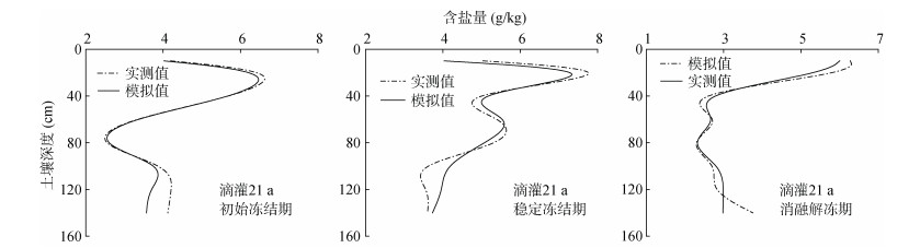 图 5 土壤盐分率定模拟结果对比 Fig. 5 Simulation results of soil salinity |
