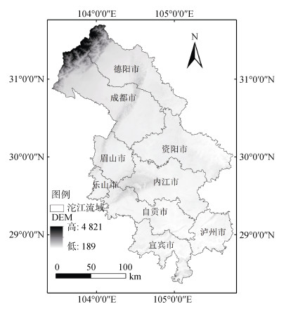 根据沱江流域涉及到的行政区,本文自流域上中下游选取德阳、成都、眉山、资阳、乐山、内江、自贡、泸州、宜宾9个市及其部分区域作为研究单元,确定研究区范围。具体见图 1。