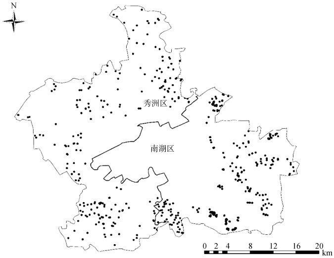 1 材料与方法 1.1 研究区概况研究区为嘉兴市郊,位于浙江省东北部、杭嘉湖平原腹心地带,具体包括南湖区和秀洲区进行农业生产的各5个乡镇。嘉兴市以粮食种植为主,占比长期在60% 以上,粮食作物以水稻为主,此外还盛产蔬菜、瓜果。研究区年均气温为17.9 ℃,年降水量为1 637.9 mm,属于典型的亚热带季风气候,土壤类型以水稻土和潮土为主。