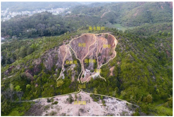 图 3 典型崩岗基本组成单元(邓羽松 摄) Fig. 3 Basic component unit of typical Benggang |