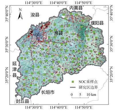 河南是全国粮食大省,其SOC水平关系到农作物的产量和质量,对保障国家粮食安全具有显著影响。基于此,本文将有“豫北粮仓”之称的滑县作为研究区,基于实测耕作层SOC和Sentinel-2高分辨率卫星遥感反射率和光谱指数数据,辅以气象、土壤、地形及人类活动等因子,综合分析各因子中不同变量与SOC的相关性,定量评估不同机器学习方法在不同因子组合下的表现,旨在构建高精度的SOC估算模型,探究其最佳因子和关键变量,揭示SOC空间变异规律。