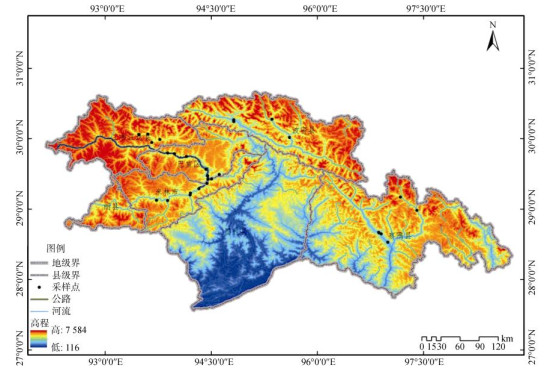 未来功能农产品有望被赋予特定功效,例如对特定疾病具有预防和辅助治疗效果。功能农业目前尚处于第一阶段,主要关注于实现对农产品中一些人体必需营养素的定量提高,特别是Se、Zn等矿物质[8]。现有研究表明,西藏土壤普遍缺Se,从地理上,我国存在一条从东北经黄土高原和四川盆地到西藏的缺Se带,而西藏正是这条缺Se带上Se缺乏最严重的地区[9],从而导致大骨节病多有发生[10]。西藏土壤Zn背景值略高于全国平均水平[11],土壤Ca、Fe含量分布相关数据未见报道。为此,本研究通过采集藏东南地区农田土壤及其作物样本,明确藏东南地区农田土壤Se、Zn、Ca、Fe空间分布特征,探析其可能的影响因子。研究结果将有助于藏东南地区功能农业的布局与发展,助力边境地区的乡村振兴。