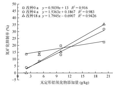 图 4 无定形铝氧化物对土壤有机氮矿化的抑制率(与对照相比) Fig. 4 Inhibition rate of amorphous Al hydroxide on nitrogen mineralization (compared with control) |