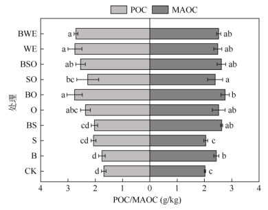 图 3 不同处理下POC与MAOC含量 Fig. 3 POC and MAOC contents under different treatments |
