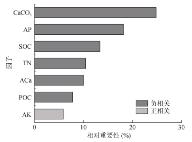 (SOC:土壤有机碳;POC:颗粒态有机碳;CaCO3:碳酸钙;ACa:交换态钙;TN:全氮;AP:有效磷;AK:速效钾) 图 5 各因素影响土壤碳饱和亏缺变化的相对重要性 Fig. 5 Relative importance of factors affecting change of soil carbon saturation and deficit |