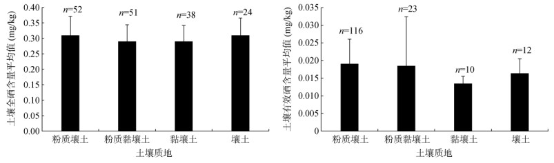 图 5 不同质地的土壤硒平均含量 Fig. 5 Average Se contents in soils with different textures |