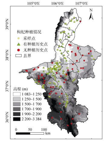 图 1 宁夏枸杞种植调查记录点分布 Fig. 1 Distribution of survey sites of wolfberry cultivation in Ningxia |