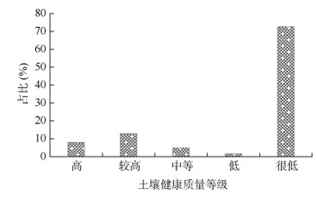 土壤健康质量综合指数分级标准为:H < 4.0,很低;4.0≤H < 5.5,低;5.5≤H < 7.0,中等;7.0≤H < 8.5,较高;H≥8.5,高。