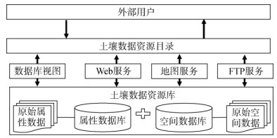 4 数据管理与共享服务以土壤原始数据资源和专题数据仓库为基础,形成土壤大数据资源目录,对土壤数据资源进行检索和浏览。利用数据库视图、Web服务、地图服务、FTP服务等方法,为获得权限的外部用户(单位、组织、个人等)提供数据共享服务(图 5)。