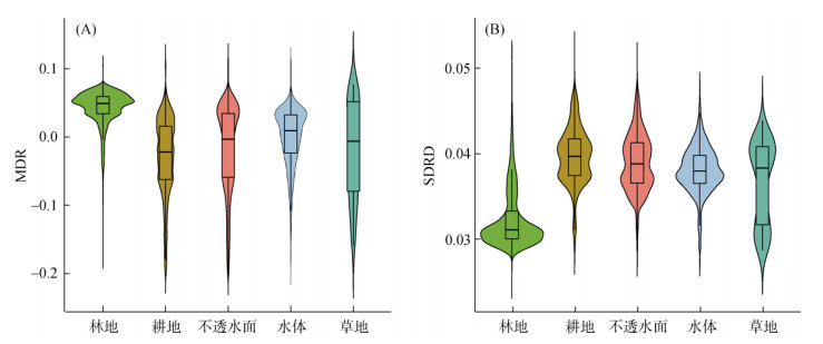 3) 根据土壤水分MRD和SDRD随着地形、气象、植被、土壤等因素的变化趋势,发现土壤水分MRD空间分布和高程、坡度以及降水量分布大致相同,SDRD分布则与其相反。NDVI、地形湿度指数和土壤质地对土壤水分MRD影响较小。土壤水分MRD值分布区间为林地 > 不透水面 > 耕地 > 草地,SDRD值分布区间则相反。