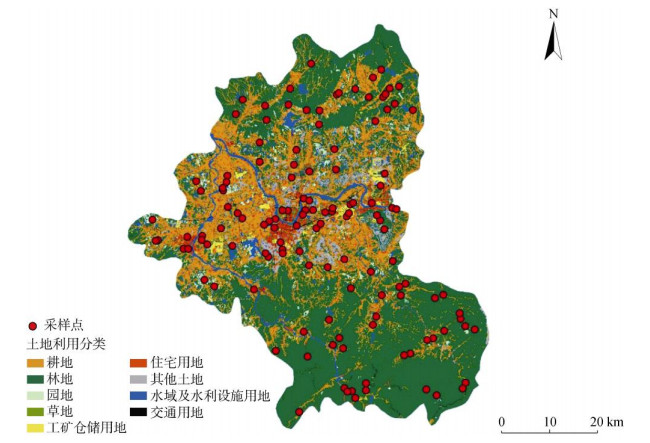 图 1 研究区土地利用与土壤样点分布 Fig. 1 Distribution of land use types and soil sample sites in study area |