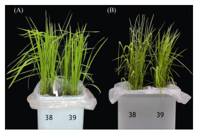 (A:正常灌溉;B:干旱胁迫) 图 1 水稻E000038和E000039盆栽试验 Fig. 1 Rice E000038 and E000039 pot experiments |