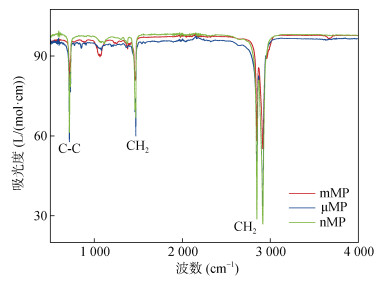 图 1 3种粒径PE-MP的傅里叶红外光谱图 Fig. 1 FTIRs of three particle sizes of PE-MP |