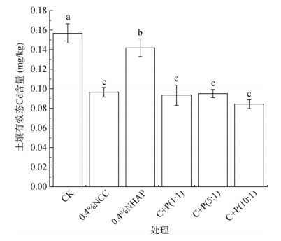 1 材料与方法 1.1 供试材料供试土壤采自江西省新余市(114°58'16''E,27°47'N)受Cd污染的水田耕作层(0 ~ 20 cm),稻田因采矿活动或用受污染的水灌溉而受到Cd污染。土壤类型属粉砂壤土。土壤经自然风干后剔除杂物,碾碎、研磨后过10目尼龙网筛备用。土壤基本理化性质见表 1。其中,pH为5.8,全Cd含量为0.58 mg/kg,高于GB15618—2018《土壤环境质量农用地土壤污染风险管控标准》[17]的筛选值(5.5 < pH≤6.5下全Cd含量0.4 mg/kg)。试验所用的NCC和NHAP购自南京埃普瑞纳米材料公司,平均直径为50 nm。