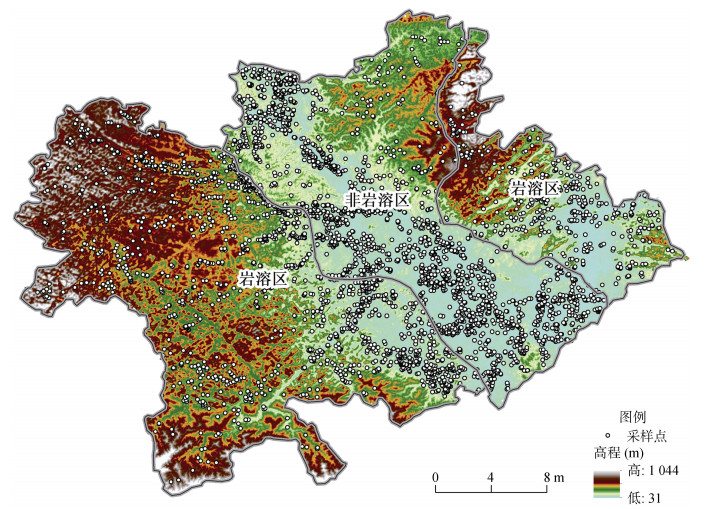 图 1 研究区高程与样点分布 Fig. 1 DEM and sampling sites in study area |