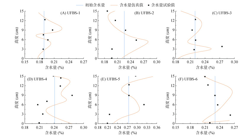 表 5 不同试件含水量试验值及仿真值相关系数 Table 5 Correlation coefficients between tested and simulated water contents at different depths |