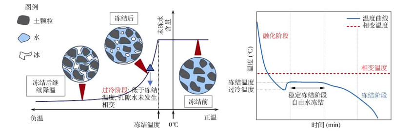 图 9 土体冻结过程温度–时间曲线及过冷现象 Fig. 9 Temperature-time curve and supercooling phenomenon during soil freezing |