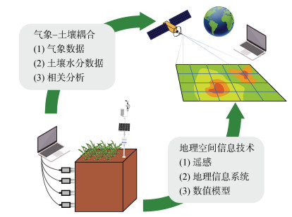 2.2 多技术融合的综合研究范式近年来,随着土壤水分大尺度快速监测和大数据处理等新技术的快速发展,使季节性干旱研究突破传统定位观测的局限成为可能。在这一背景下,以系统性思维为指导,通过多源数据融合与多模型集成,实现了从“点”到“面”、从“现象描述”到“机理揭示”的跨越,将干旱研究推向了综合、定量、多尺度的新阶段[21]。该范式主要依托遥感监测、地理信息系统和数值模型3项技术。