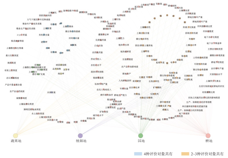 图 4 不同评价对象指标选取关联性网络图 Fig. 4 Correlation network diagram of indicator selections for different evaluation objects |