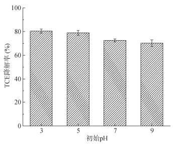 图 9 初始pH对S-nZVI活化PS降解土壤中TCE的影响 Fig. 9 Effect of initial pH on degradation of TCE in soil by S-nZVI activated PS |