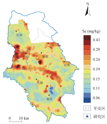图 1 研究区土壤Se背景及空间位置 Fig. 1 Soil Se background and spatial location of study area |